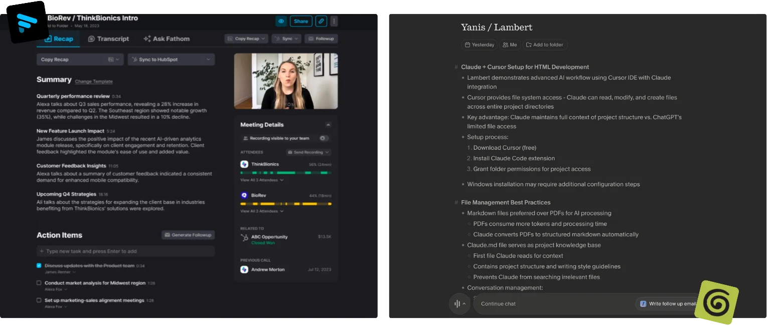Verdict: Granola wins on social friction and privacy. Fathom wins on reliability and shareability. Recording sales calls all day? The bot is fine. Your prospects expect it. Internal exec meetings or sensitive client calls? Granola's bot-free capture is a real differentiator.