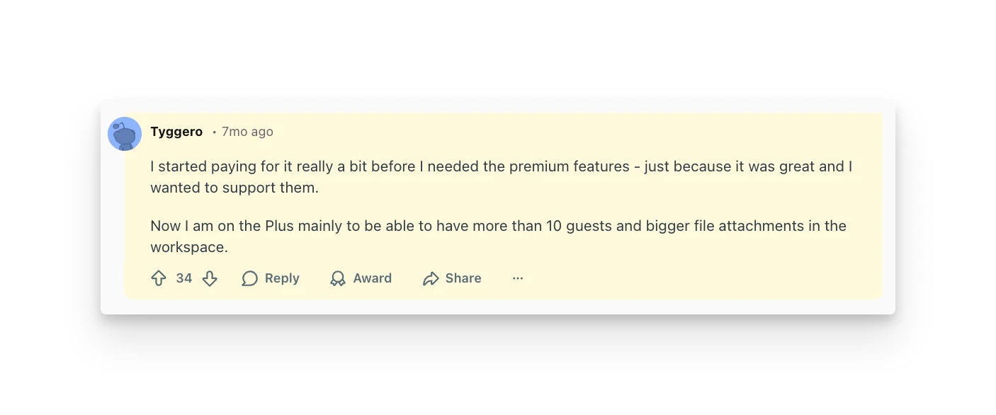 "I started paying for it really a bit before I needed the premium features—just because it was great and I wanted to support them." — u/Tyggero, Reddit