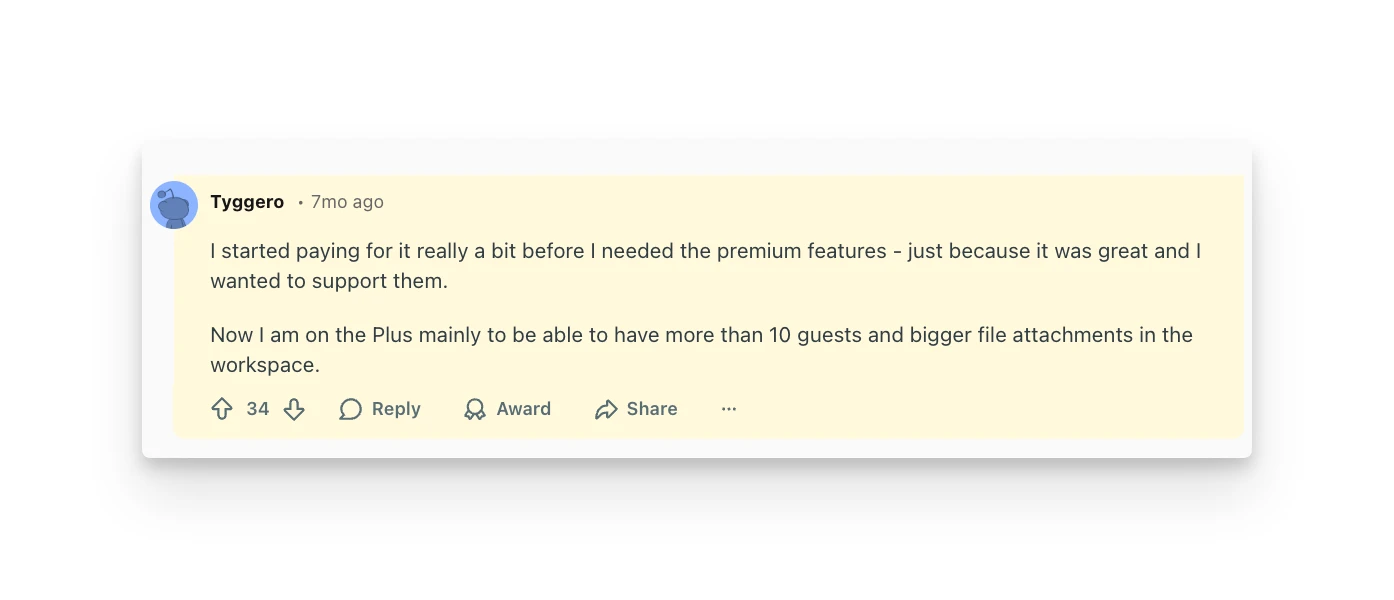 "I started paying for it really a bit before I needed the premium features - just because it was great and I wanted to support them." — Reddit review, 2026