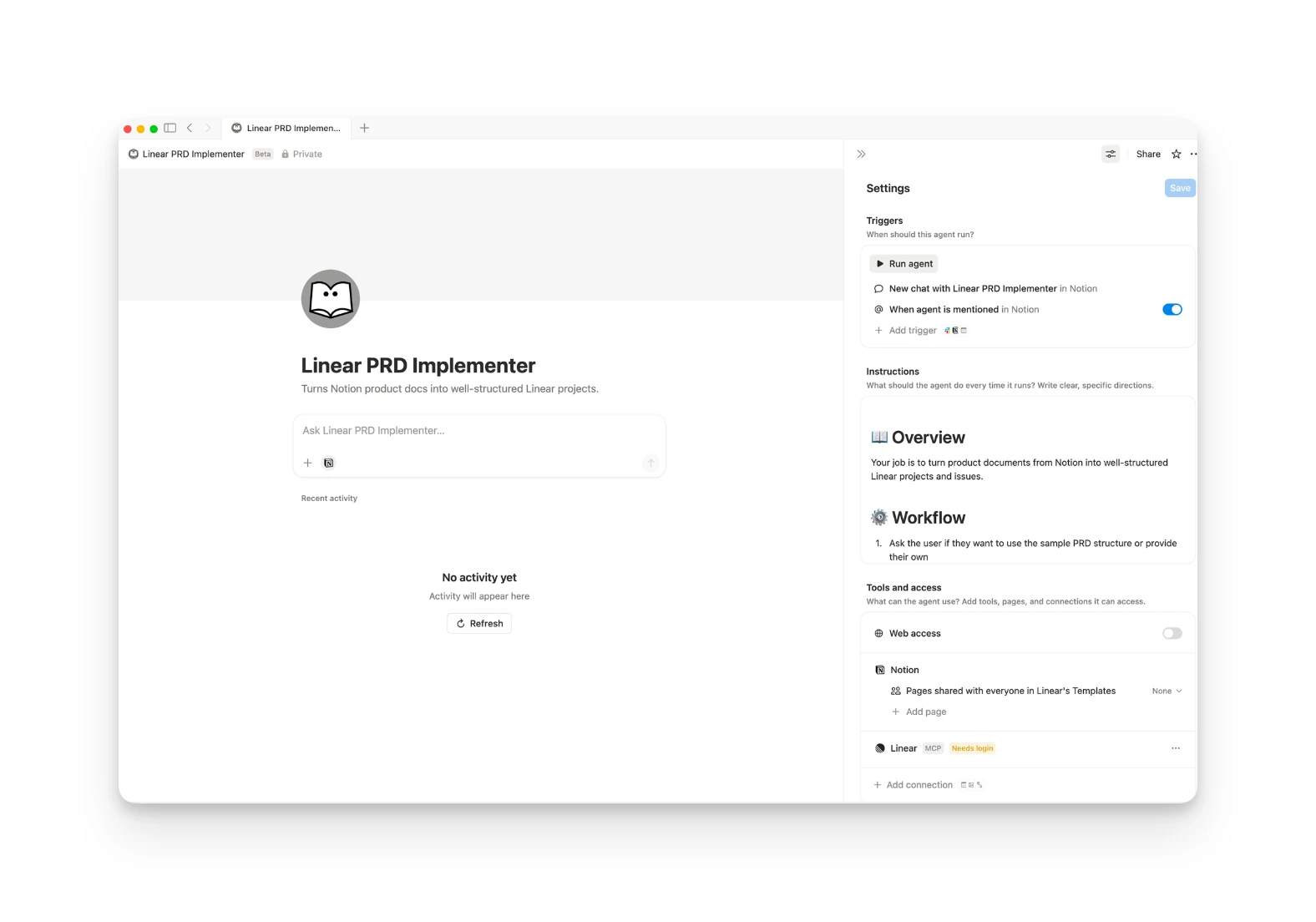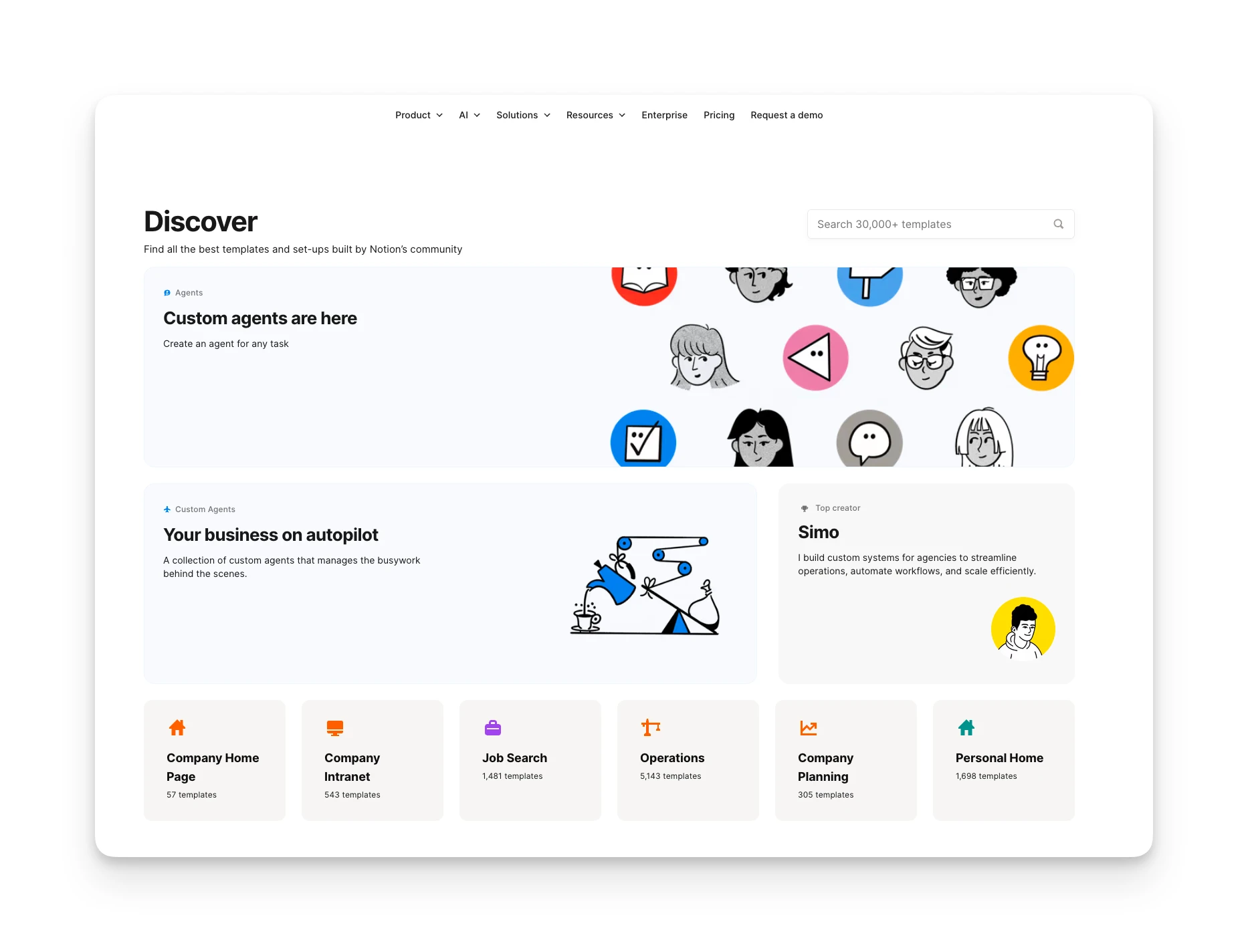 Notion's newest capability: build AI agents that automate repetitive workflows. Create an agent that summarizes daily standup notes, triages support tickets, or drafts weekly reports.