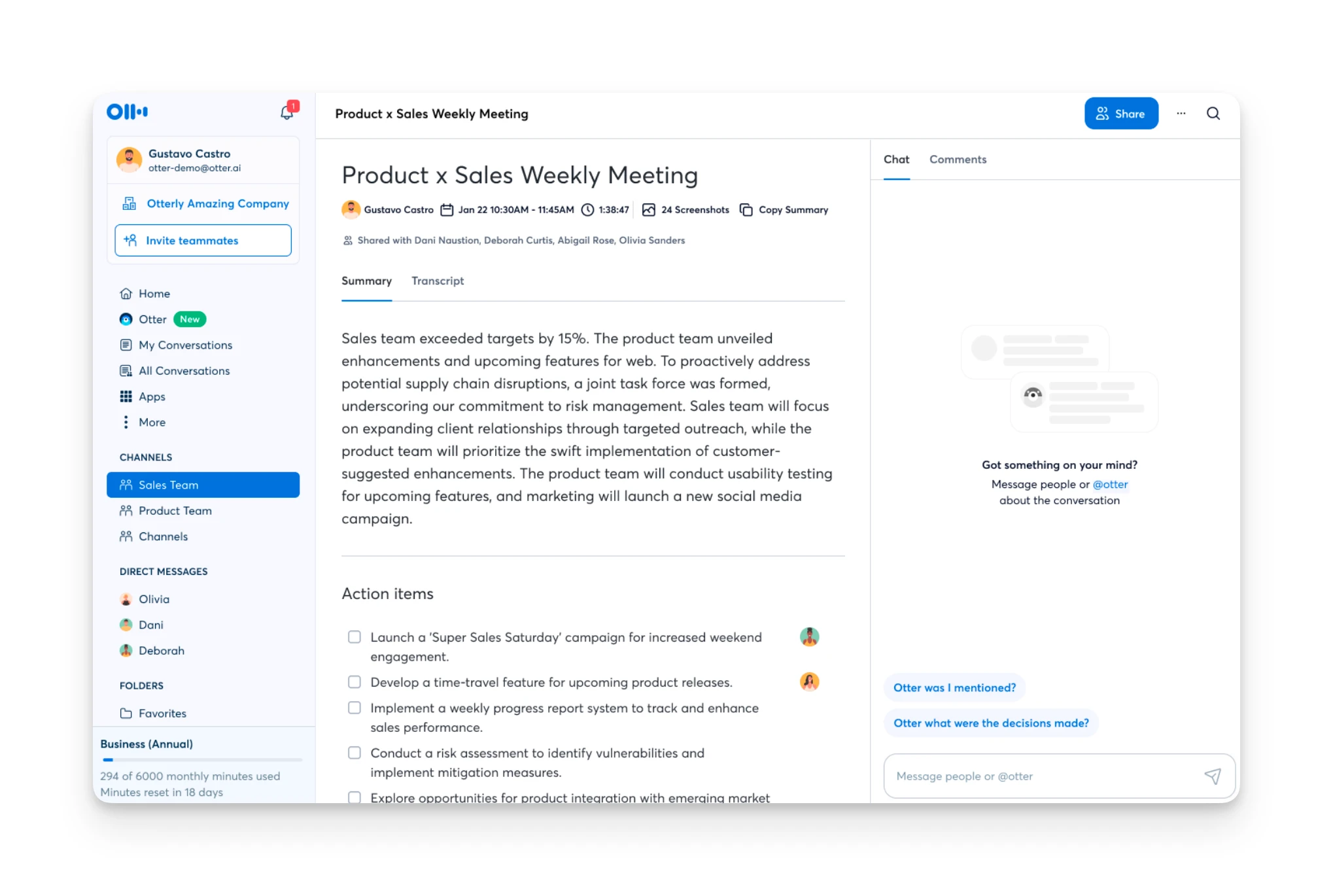 Otter AI gives you transcripts and summaries, but the coordination work of turning meeting discussions into done work still falls on you.