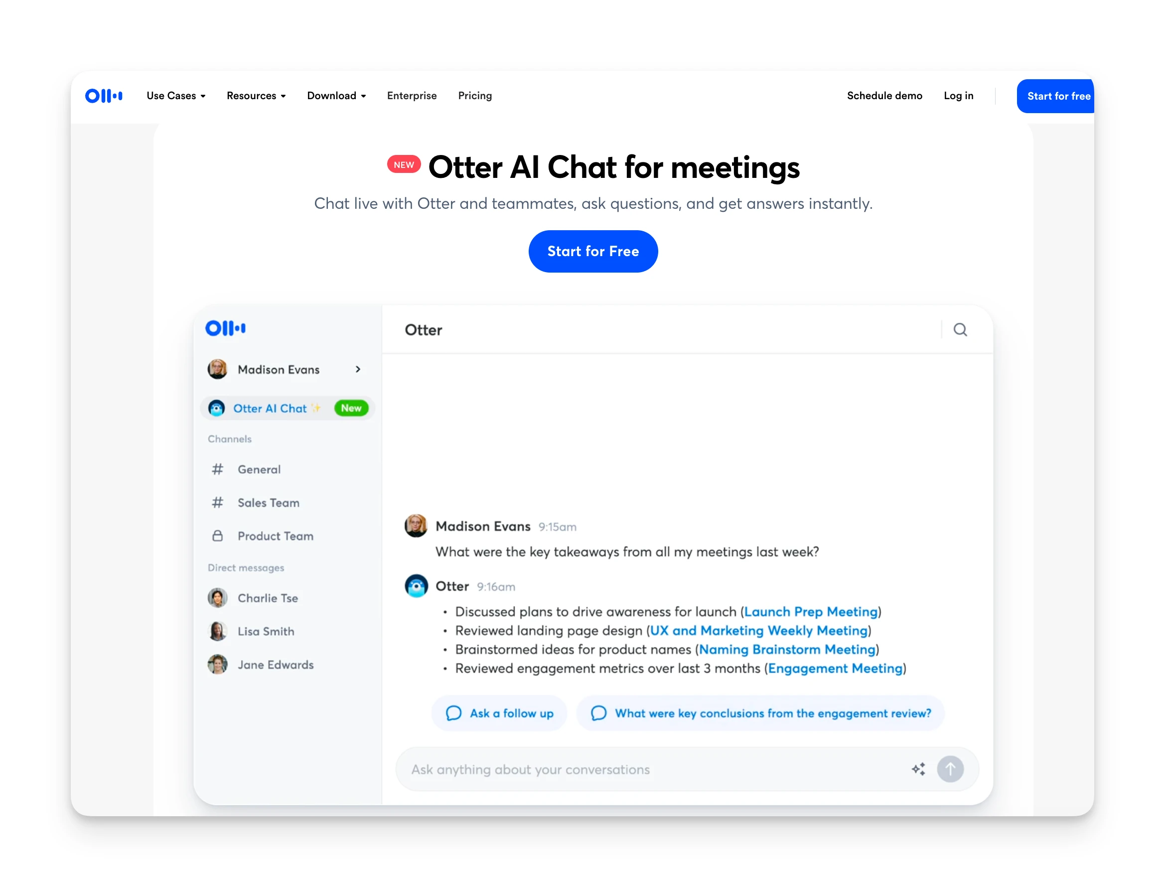 This is more useful for teams than individuals. If multiple people on your team use Otter, Channels provide shared access to meeting history without forwarding transcripts.