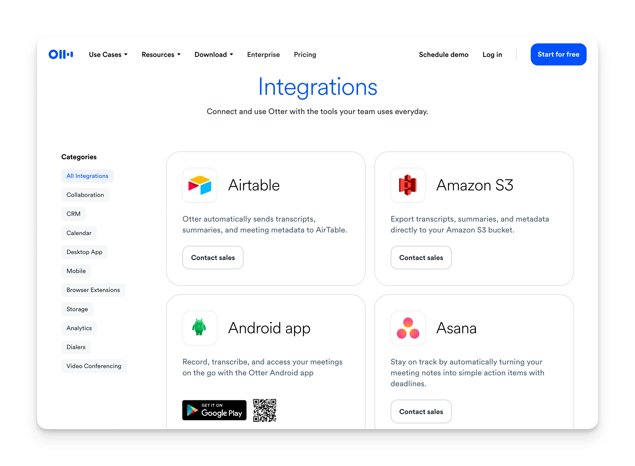 Otter connects to the major productivity tools you'd expect: