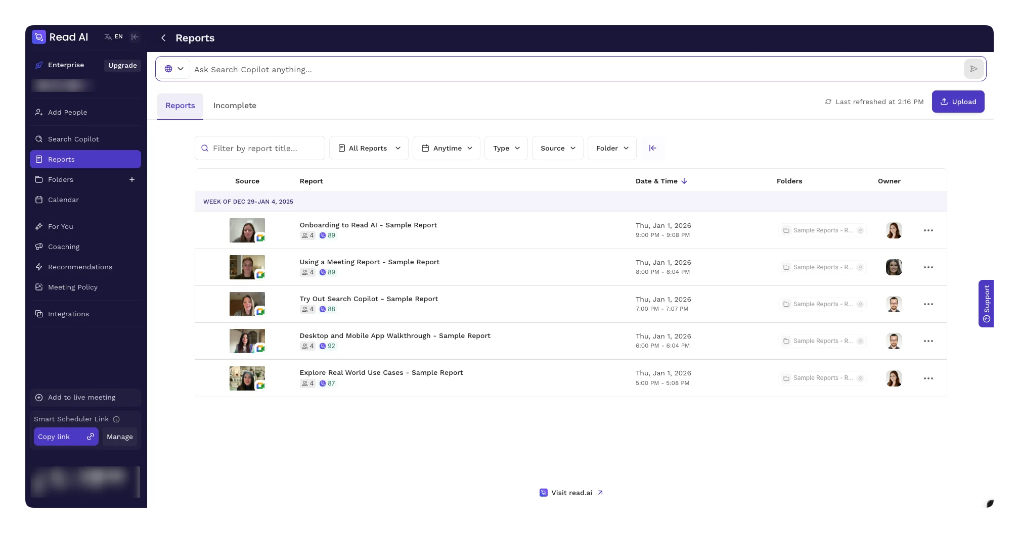 Read AI is an AI copilot for meetings, email and chat. Started in 2021 as a meeting analytics tool (sentiment, engagement, talk time). Now a full workspace that summarizes Zoom/Meet/Teams calls, Gmail and Outlook threads, and Slack/Teams messages. All searchable from one place.