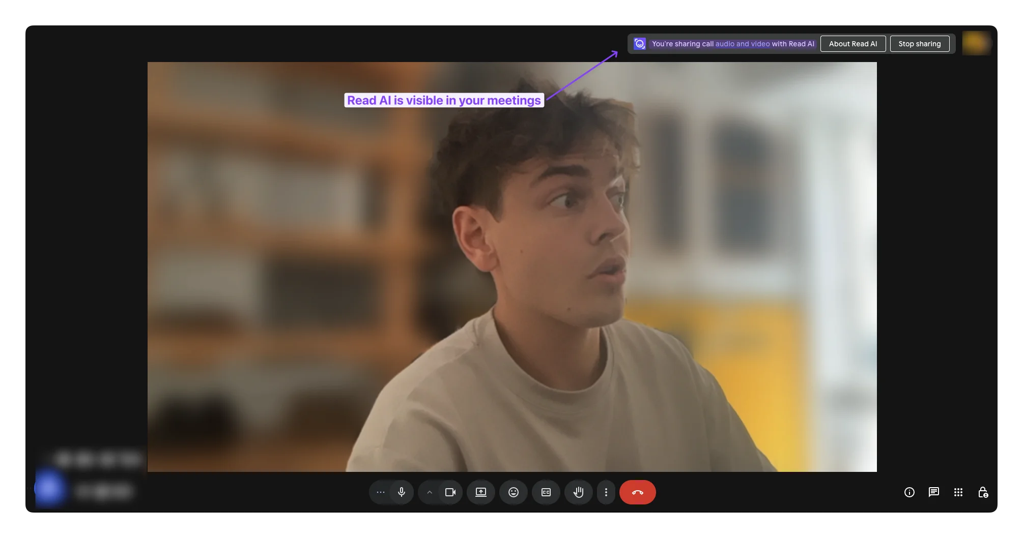 | Bot in meeting | Yes. Visible participant called "Read AI Notetaker" |